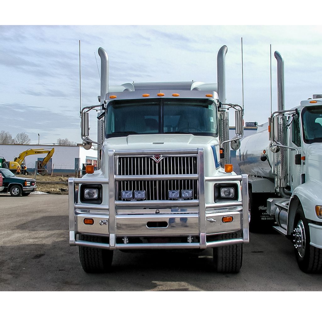 The best protection against unwanted downtime, expensive repairs, and lost contracts, the Defender guards your asset and keeps you on the road. It comes standard with fully boxed-in uprights, 3-inch tubes, a lower rake, and HERD’s signature mirror polish finish. The Defender can function as a brush guard, deer guard, and moose bumper and features HERD’s exclusive impact plates to protect against folding in from the outside if an impact is made off-center. It can be ordered in a two-post version or without the lower rake and has options for HERD’s Slam Latch, Lift Assist, and signal lights. Protect your vehicle and your bottom line.