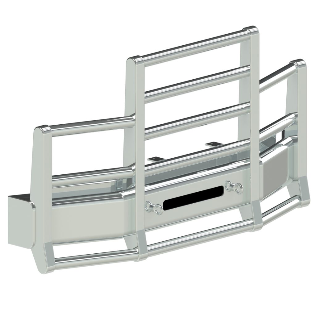 The best protection against unwanted downtime, expensive repairs, and lost contracts, the Defender guards your asset and keeps you on the road. It comes standard with fully boxed-in uprights, 3-inch tubes, a lower rake, and HERD’s signature mirror polish finish. The Defender can function as a brush guard, deer guard, and moose bumper and features HERD’s exclusive impact plates to protect against folding in from the outside if an impact is made off-center. It can be ordered in a two-post version or without the lower rake and has options for HERD’s Slam Latch, Lift Assist, and signal lights. Protect your vehicle and your bottom line.