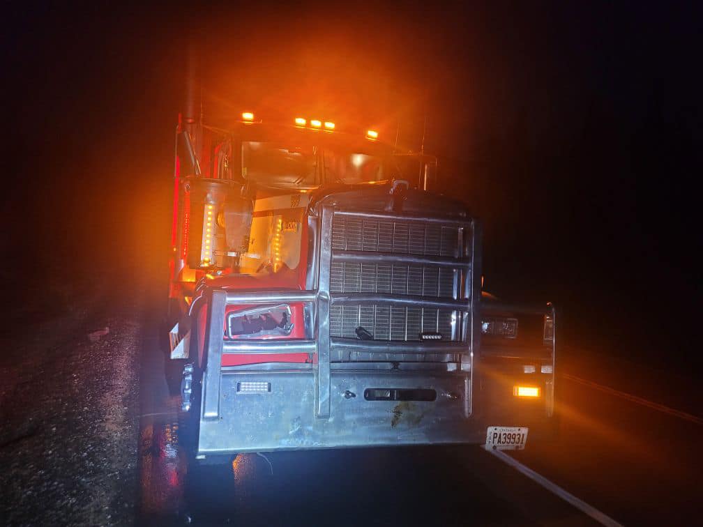 Cole’s public post: “Anyone running the North country without a moose bumper is wild, even in an aero truck with a moose bumper this would have been very different! Thank god for Rick [driver] and our HERD bumper that kept this truck on the road and capable of safely pulling over after striking a full grown bull moose. What most people don’t know is that without that bumper the moose likely would have taken out that passenger steer likley resulting in the truck wrecking in to the ditch. Great Job as always, Rick. Glad you’re ok.”