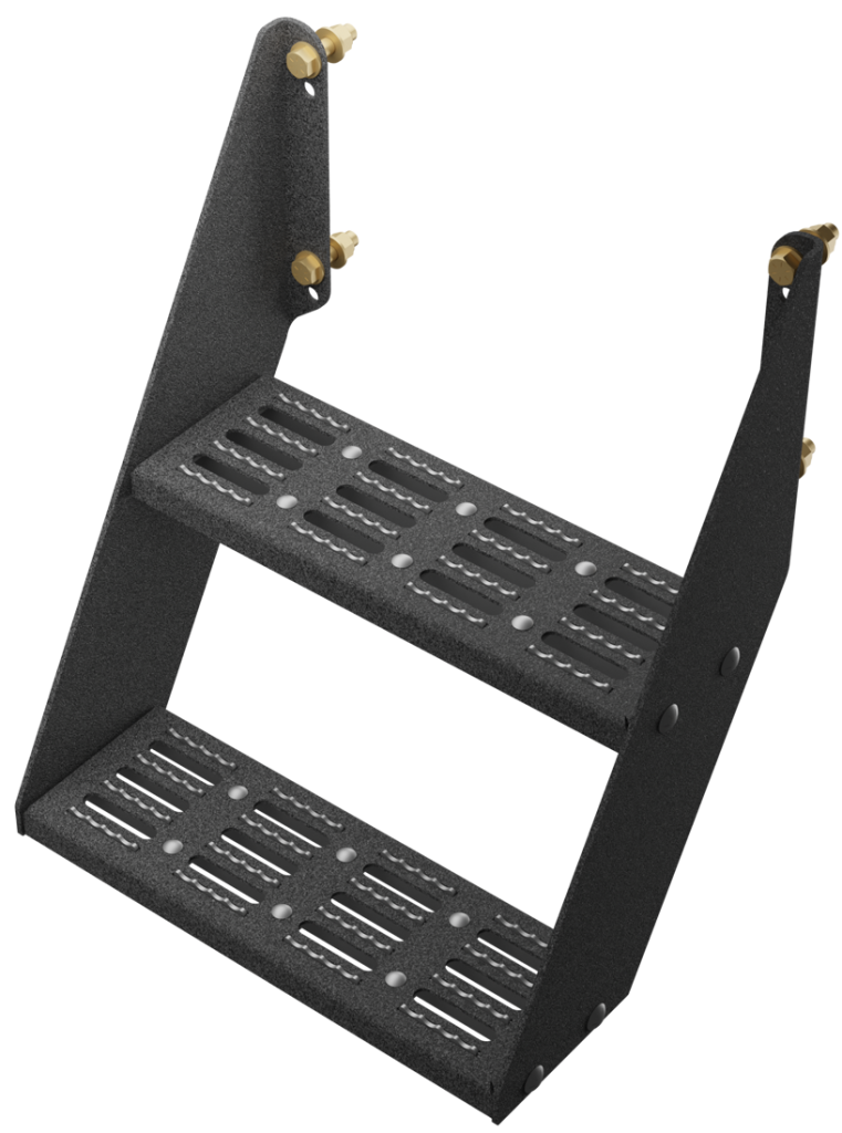 Complement your back end with HERD’s frame-mount steps. Coated in corrosion-resistant HARD Coat, the aluminum treads are inserted upward through the step for maximum traction that perfectly balances functionality and durability.